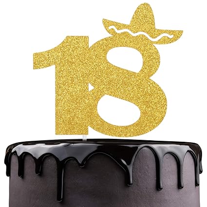 Fiesta 18th Birthday Cake Topper Gold Glitter Mexican Summer