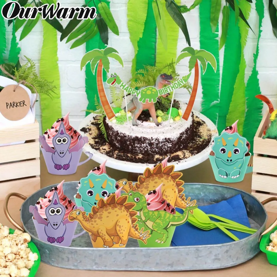 Ourwarm Dinosaur Cupcake Wrapper Cake Topper Birthday Party