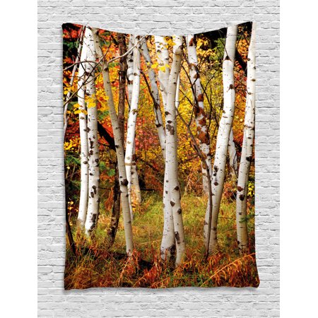 Fall Tapestry White Fall Birch Trees With Autumn Leaves Growth