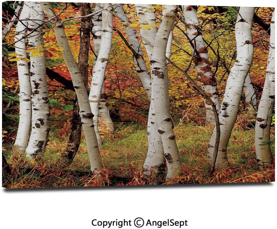Wall Art Decor High Definition White Fall Birch Trees With Autumn