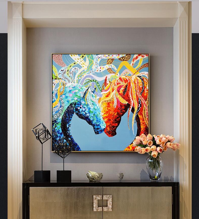 2020 New Decorative Art 100 Handmade Oil Painting Horse On Canvas