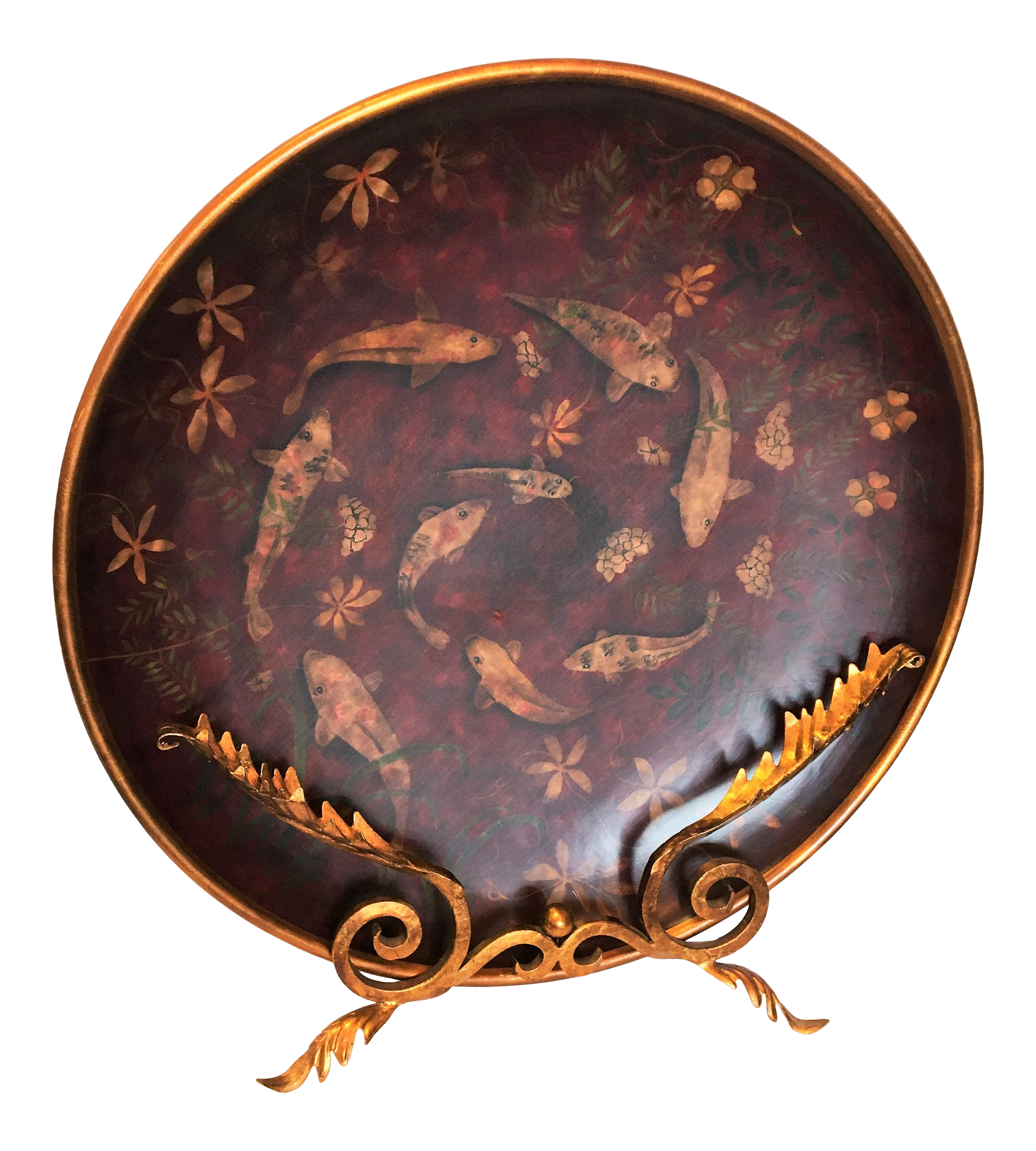 Decorative Koi Fish Plate With Gilded Stand Chairish