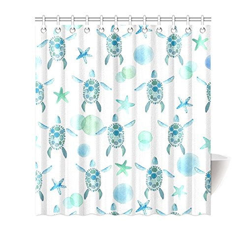 Mkhert Sea Turtle Starfish Watercolor Sea Life Waterproof Shower