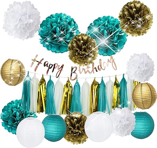 Amazon Com Furuix Teal Gold Birthday Party Decorations Happy