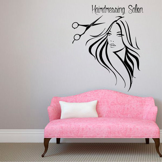 Shop Fashion Girl Hairdressing Beauty Salon Decor Scissors Vinyl