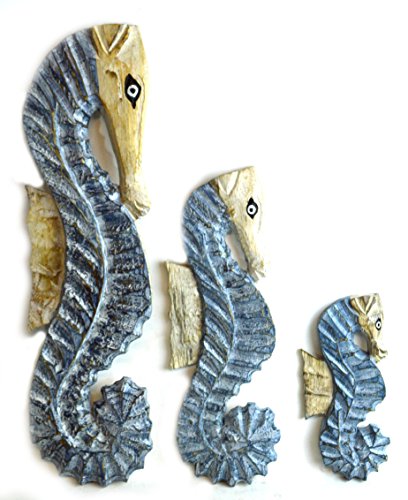 Hand Carved White Wash Wood Set Of 2 Seahorses Wall Art Hanging