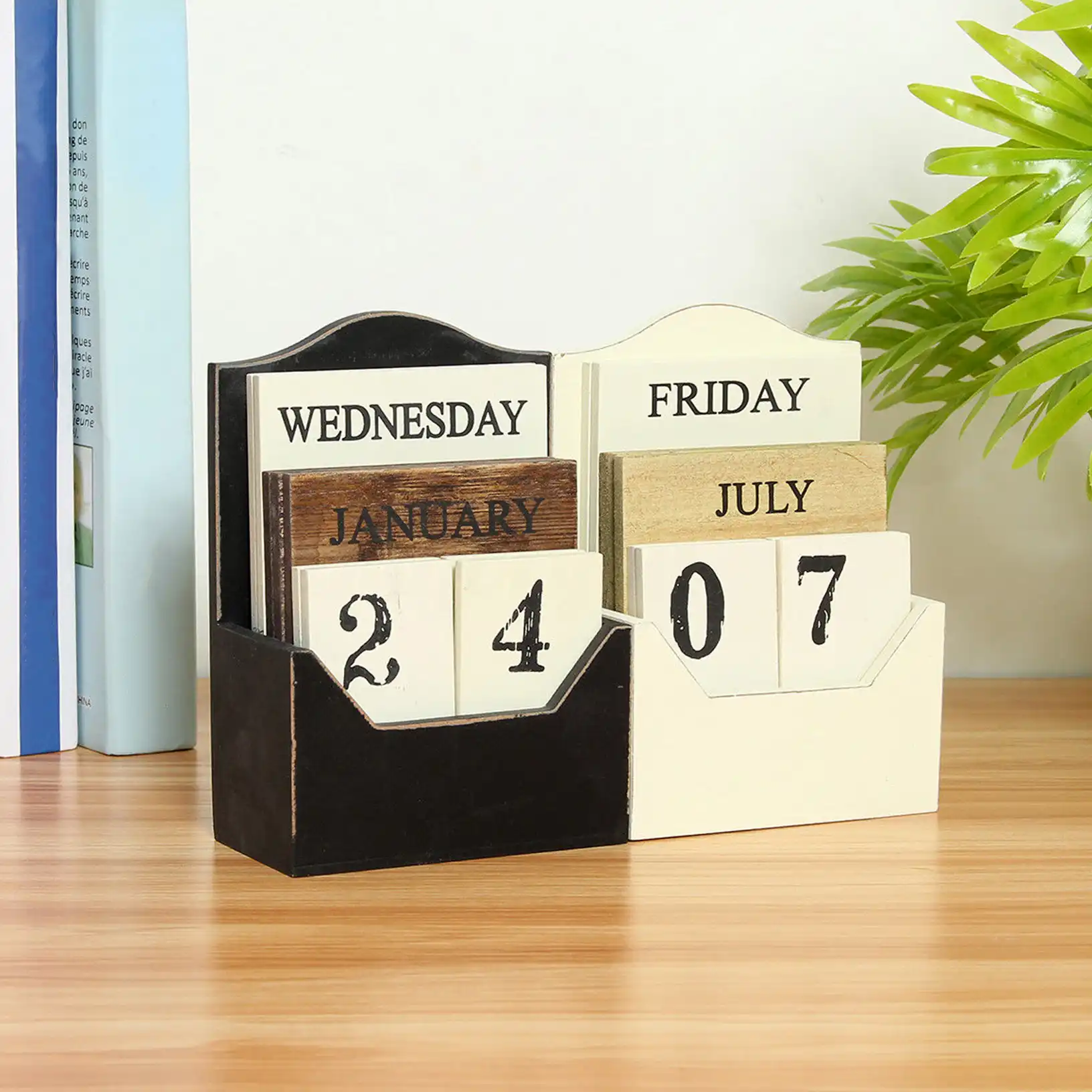 Desk Decor Diy Office Home Perpetual Calendar Wooden Rustic