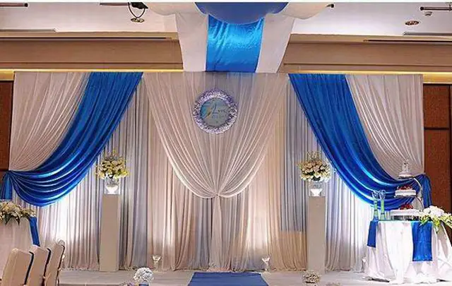 Wedding decorations ideas 25199 views. Free shipping white wedding backdrop with royal blue swags 3m tall x 6m length wedding decoration.