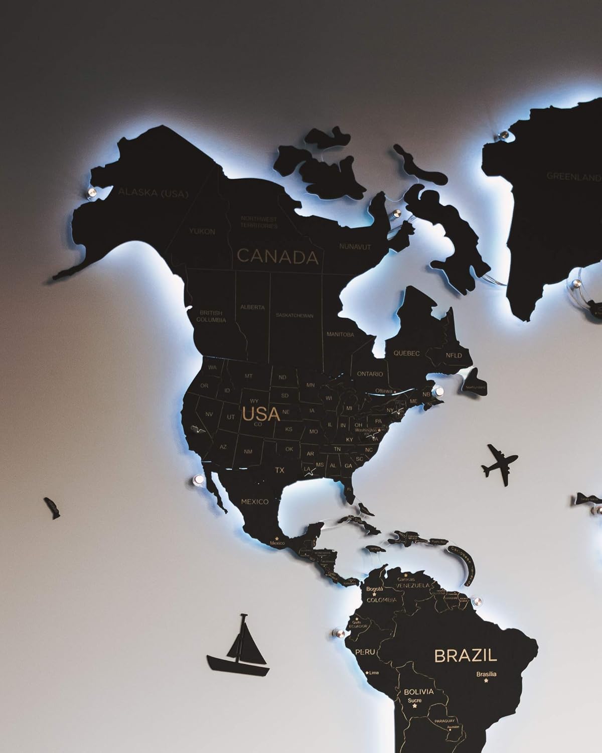 Light Wood Wall Map Of The World Map Wall Art Large Travel Led Map