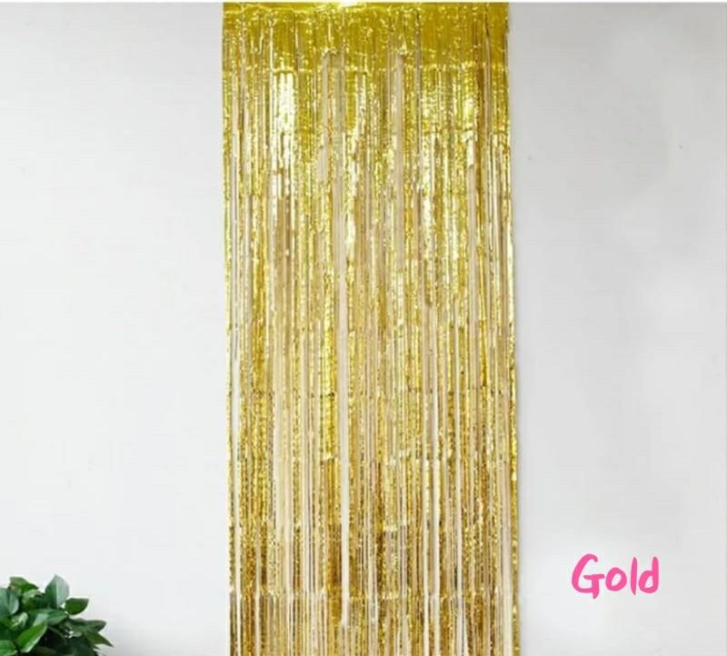 Gold Metallic Tinsel Curtain For Party Birthday Events Decoration