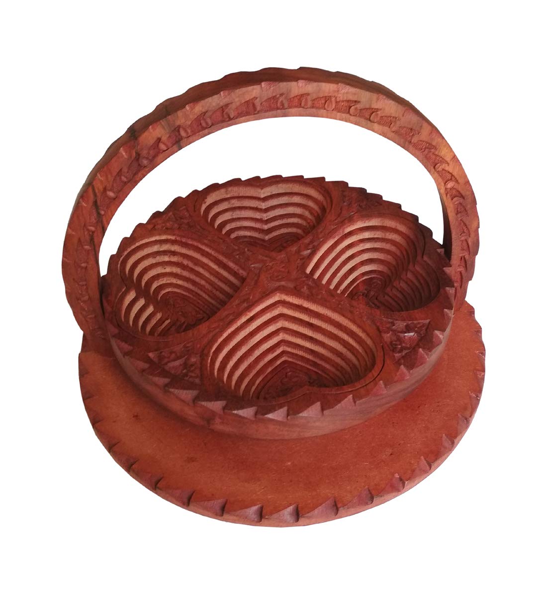 Wooden Handicraft Dry Fruit Basket 12 Inches Foldable Four