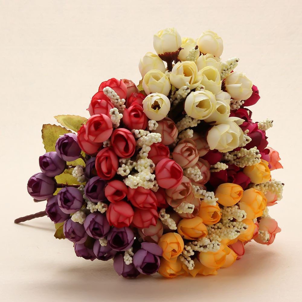 Colorful Silk Flowers Artificial Flower 15 Heads Bouquet Mini Rose